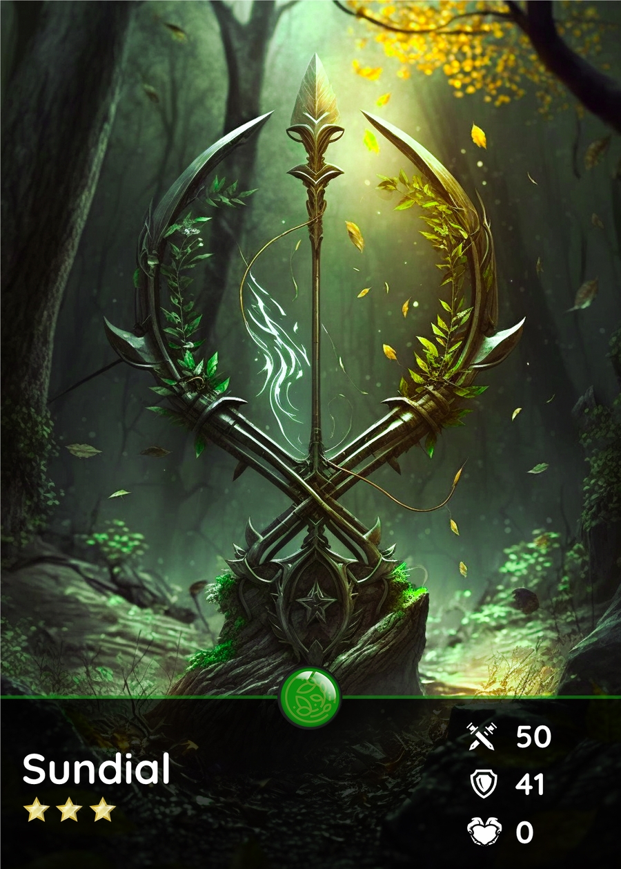 Item cards serve as boosters for gaming cards. At the start of a game, each item card receives three charges. The charges can be attached to gaming cards to improve their values. As soon as the charge is attached to the gaming card, the item card loses one of the three charges.