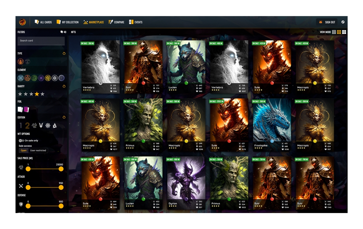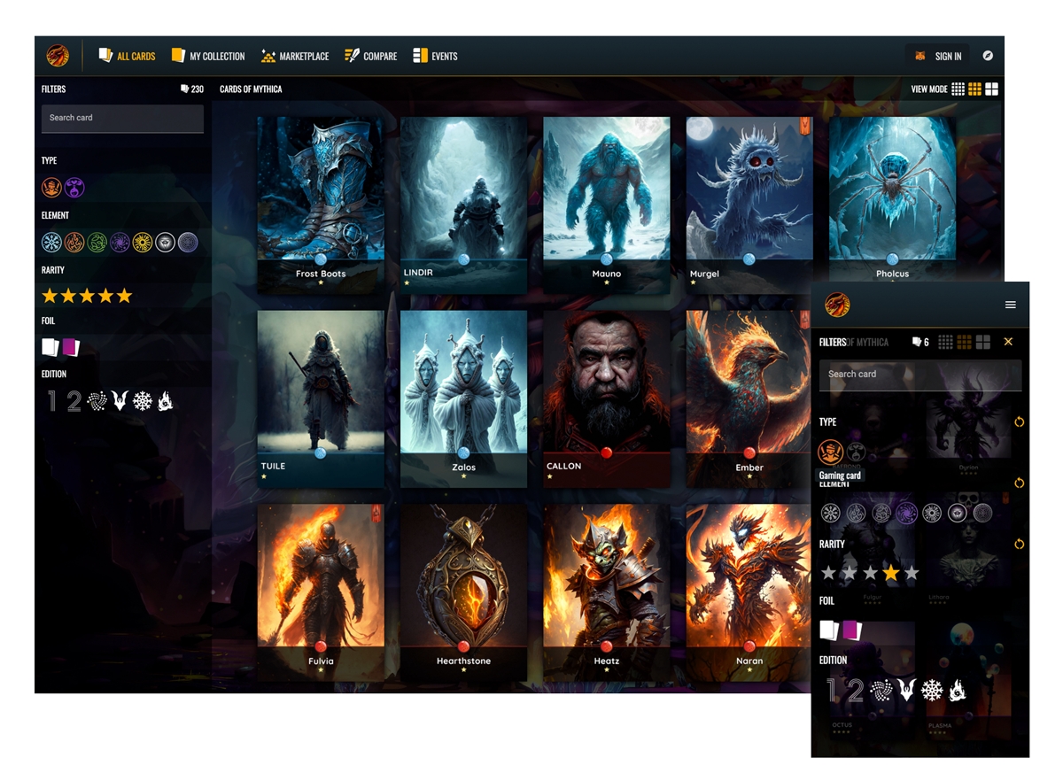 With the Dark Mythos Explorer, we offer a central platform for all players, collectors and fantasy enthusiasts. You can use the Explorer to buy and manage cards, read stories about cards and configure decks for the game. In addition, exciting events take place regularly in the Explorer and you can level up your hero here.