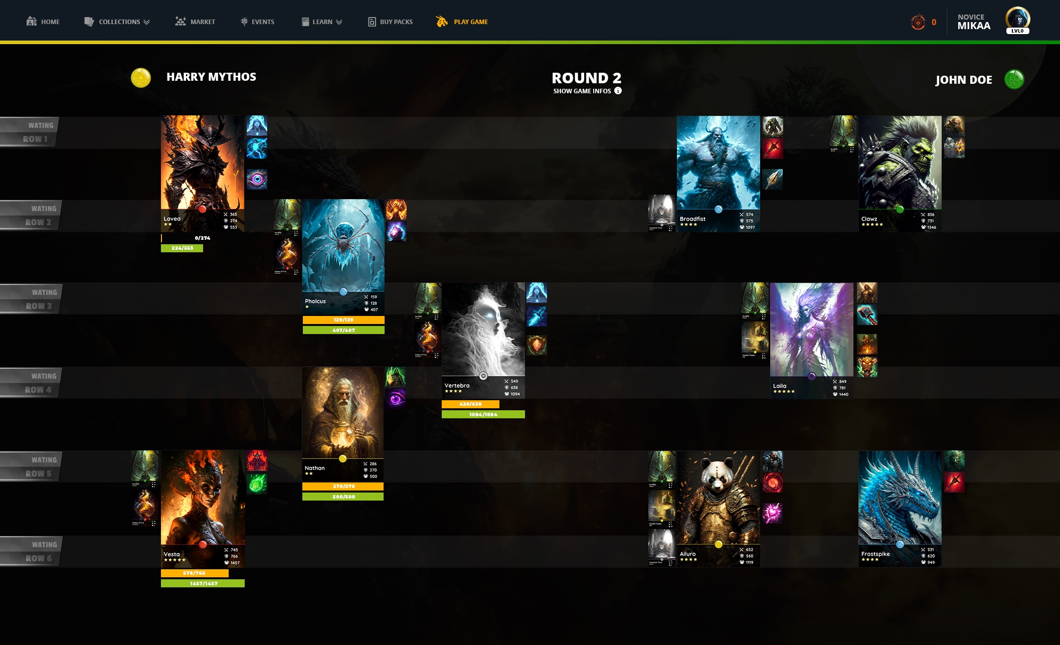 As already mentioned in the general section, the game takes place in rows. The playing field has 6 rows. Each card occupies 2 rows, regardless of the formation.