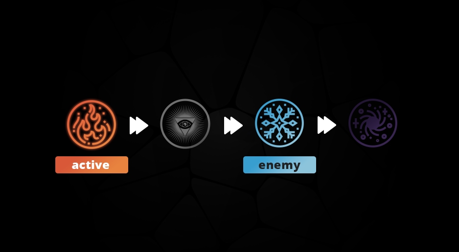 Four random elements are drawn at the start of a match. The arrangement of the elements is also random. This results in the so-called "elementary chain".